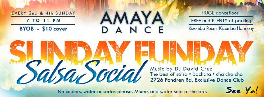 Houston Salsa Social - AMAYA SUNDAY FUNDAY - every 2nd and 4th Sunday of the month!